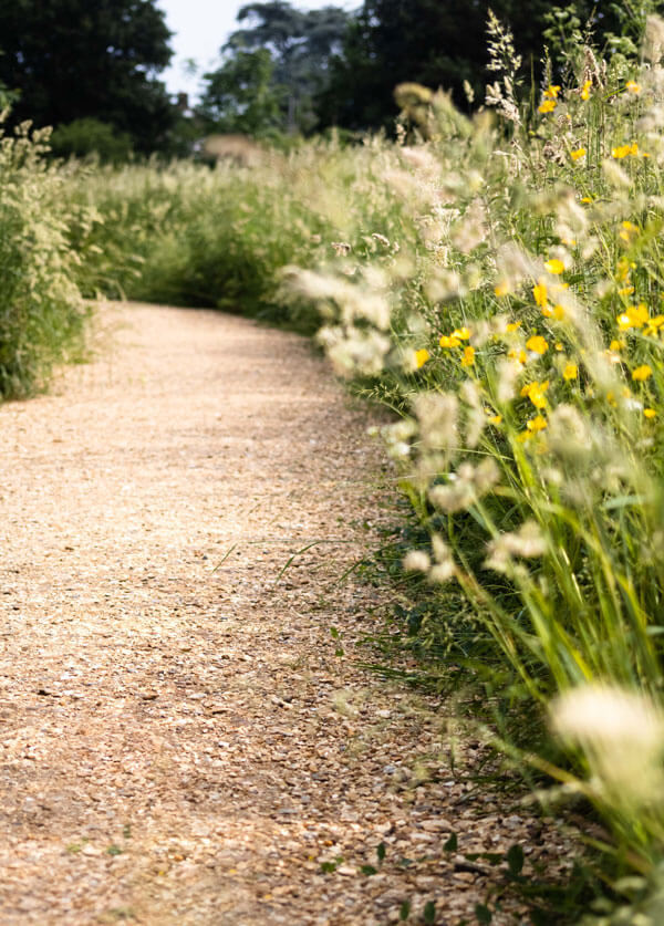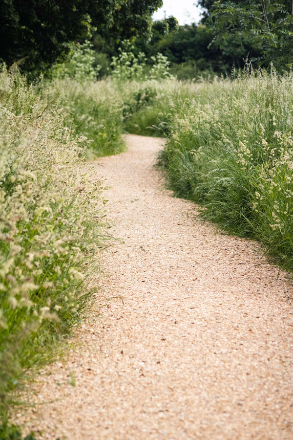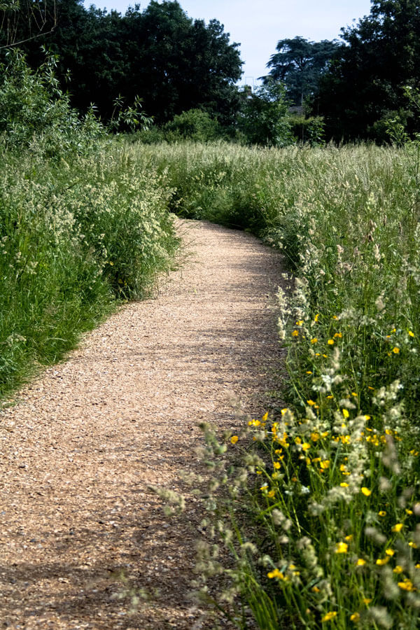 The original meadow path network suffered from poor drainage, was narrow, mostly unsurfaced and overgrown in places. We provided a new 2-metre-wide all-weather surfaced perimeter path to the 430 metre northern section eliminating the drainage problems. We also widened and added a cambered surface to the shorter southern link.